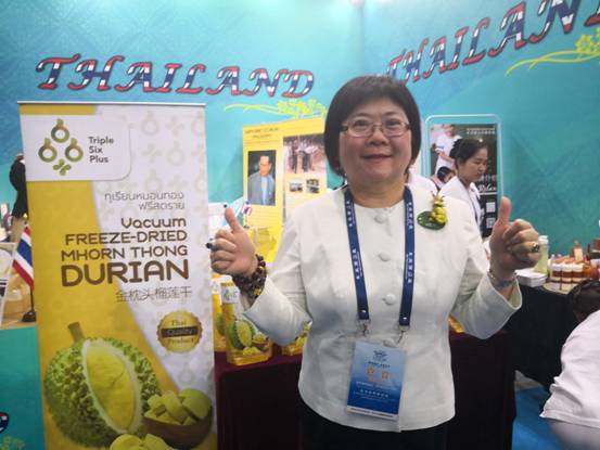 泰王國駐青島總領(lǐng)事館總領(lǐng)事王玉君親自到東亞商品展現(xiàn)場,推廣泰國的美食文化。她說“主辦方在這里辦了一場大型的商品展,我們覺得非常好。這是一個很好的經(jīng)貿(mào)文化合作交流平臺,能讓更多的中國朋友了解泰國,讓更多的泰國商品走進中國。”