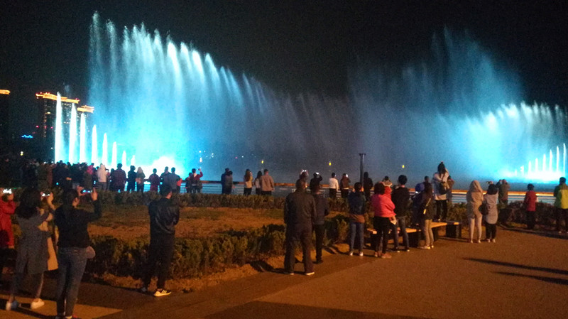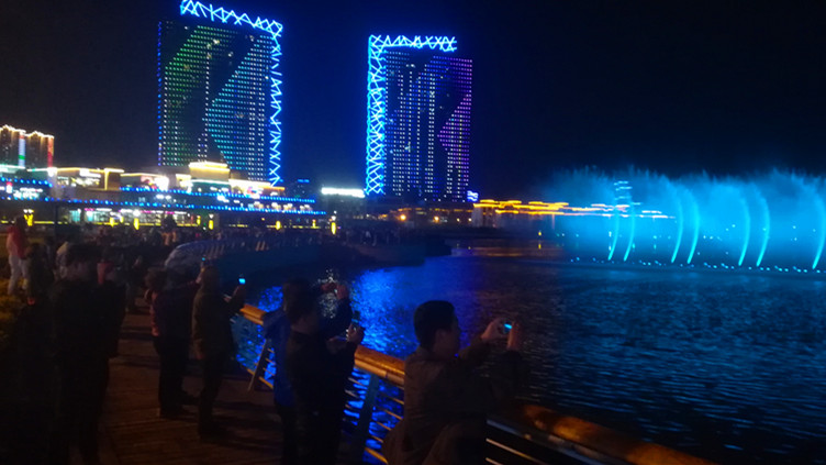 近日,位于城市陽臺(tái)景區(qū)的音樂噴泉吸引了眾多市民游客前往觀賞,視頻和美照刷爆了不少人的“朋友圈”,一到噴泉開始的時(shí)間,整個(gè)廣場人頭攢動(dòng),吸引大批游客流連忘返。位于景區(qū)中央湖的音樂水秀噴泉,是西海岸新區(qū)最大的音樂噴泉,周一至周四每天20:00至20:30播放一場,周五至周日或節(jié)假日每天19:30至20:00,20:30至21:00播放兩場。