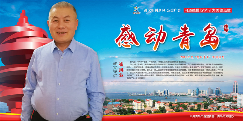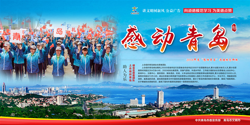為進(jìn)一步發(fā)揮道德模范引領(lǐng)作用,在全社會(huì)營(yíng)造崇尚道德模范、學(xué)習(xí)道德模范、爭(zhēng)當(dāng)?shù)赖履7?、關(guān)愛道德模范的濃厚氛圍,市委宣傳部、市文明辦以我市2018年“感動(dòng)青島”道德模范為原型,發(fā)布“向道德模范學(xué)習(xí) 為美德點(diǎn)贊”公益海報(bào)。他們青島的道德模范,他們讓這座美麗城市具有了心靈之美、愛心之美、道德之美、文明之美,他們就是美麗城市的道德高地和精神榜樣。