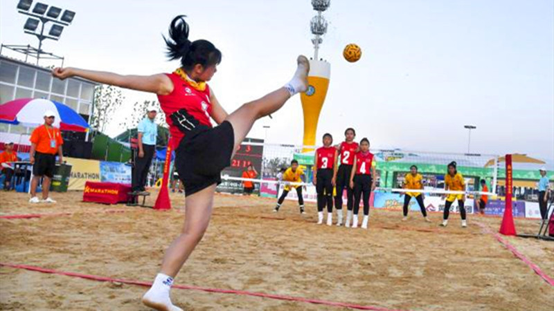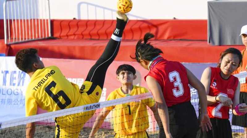 7月10日,在金沙灘啤酒城舉辦的2019亞洲沙灘藤球錦標賽女子團體賽中,中國隊獲得亞軍。