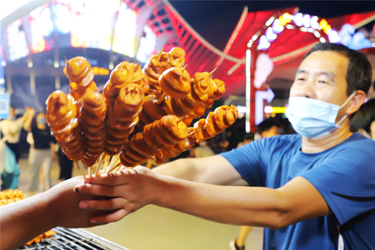 ▲游客買烤面筋。記者 王培珂 報道
