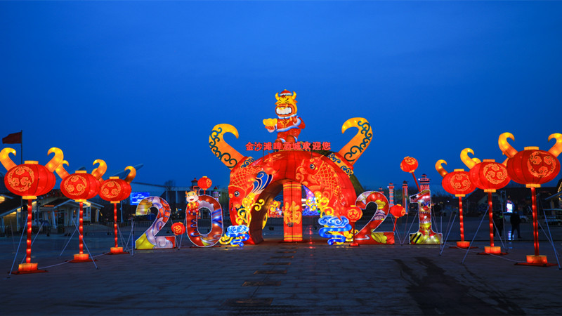 啤酒城內(nèi)將集中展出大中小9組彩燈燈組50余個造型,其中包括生肖牛年造型“牛氣沖天”、祥獅與燈籠造型“祥獅賀歲”“鼓舞青島”“侏羅紀”等形態(tài)各異、時尚靚麗、震撼唯美的彩燈組合,展出總面積約17000平方米。市民可從啤酒城主入口“干杯雕塑”處進入賞燈,通過這些寓意吉祥、美輪美奐的彩燈造型,感受震撼的彩燈藝術(shù)和精湛的傳統(tǒng)工藝。此外,在啤酒城內(nèi)的啤酒大道、音樂大道,金沙灘路沿線還巧妙利用路燈燈箱和樹干燈光裝置,策劃啤酒元素與節(jié)日主題相互融合的燈光亮化網(wǎng)紅街區(qū),讓游客和市民置身“不夜啤酒城”。