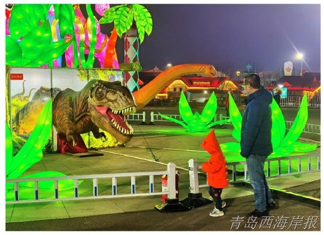 2月5日晚,金沙灘啤酒城9組50余個(gè)造型各異的彩燈燈組正式亮相,彩燈展示將持續(xù)到2月28日(正月十七),市民可免費(fèi)觀賞。記者在現(xiàn)場(chǎng)看到,啤酒城主入口的“牛氣沖天”造型,運(yùn)用抽象的牛頭造型和燈籠相結(jié)合,寓意牛年紅紅火火。“侏羅紀(jì)”是可動(dòng)可發(fā)聲的恐龍?jiān)煨蜔艚M,高度10米,深受小朋友們的喜愛(ài)。此外,還有“金牛送?!薄叭A燈初上”等更多精彩等你來(lái)發(fā)現(xiàn)。