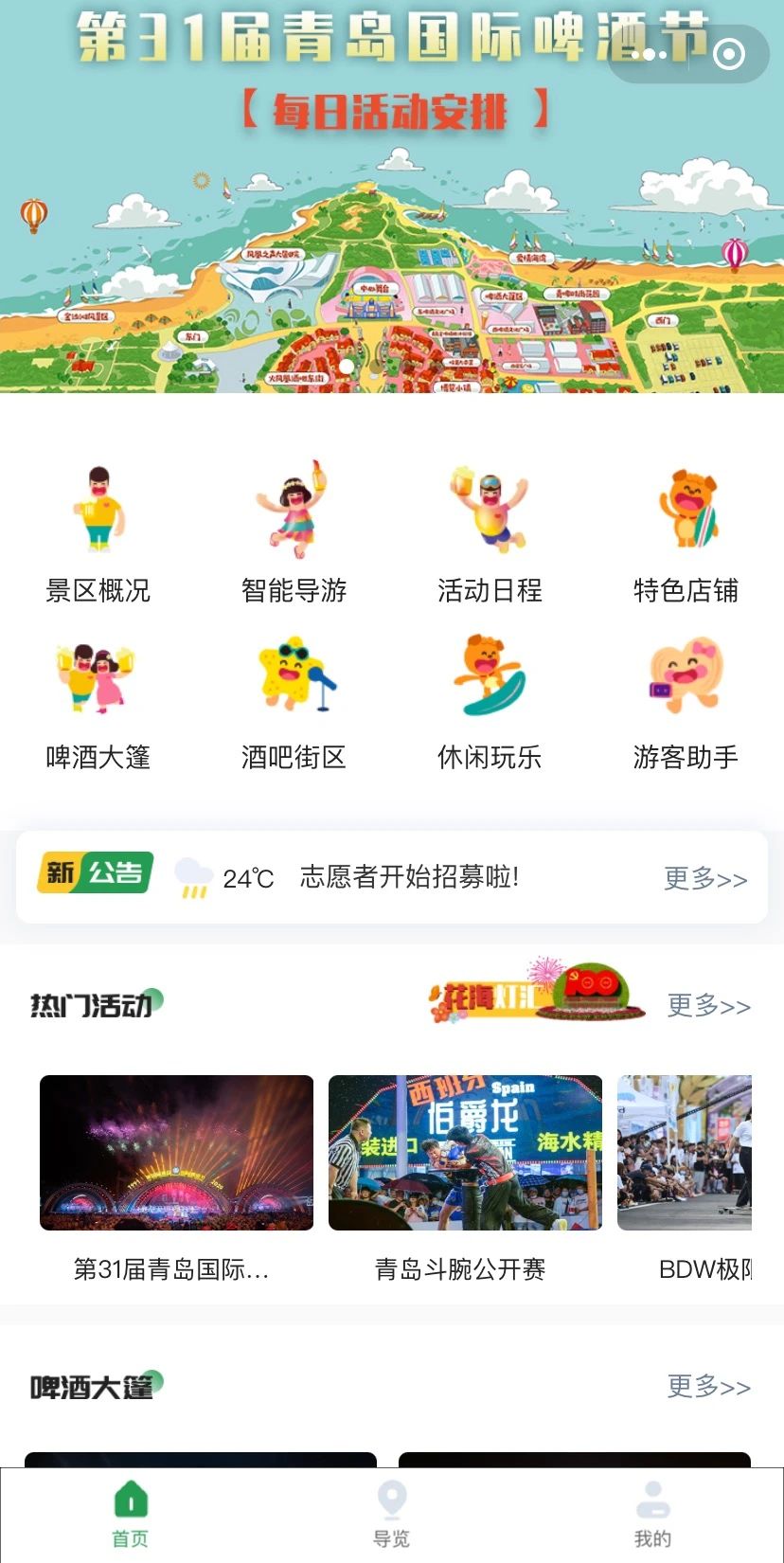 7月16日上午10點(diǎn),第31屆青島國際啤酒節(jié)金沙灘啤酒城盛大開城,一年一度的狂歡盛宴再度開啟,為了讓大家更好的來“嗨”,金沙灘啤酒城特別推出電子導(dǎo)覽程序,帶大家玩轉(zhuǎn)青島國際啤酒節(jié)!