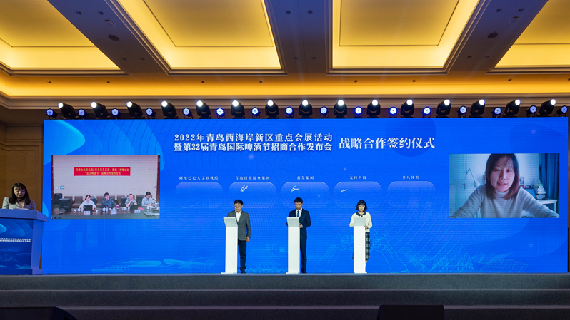 11月30日,青島西海岸新區(qū)召開2022年重點(diǎn)會(huì)展活動(dòng)暨第32屆青島國(guó)際啤酒節(jié)招商合作發(fā)布會(huì)。會(huì)上,解讀了《青島西海岸新區(qū)關(guān)于打造最美會(huì)展海岸帶建設(shè)國(guó)際會(huì)展名區(qū)的實(shí)施意見》,發(fā)布了2022年青島西海岸新區(qū)68項(xiàng)重點(diǎn)會(huì)展活動(dòng),并對(duì)招商資源進(jìn)行了推介。黃發(fā)集團(tuán)現(xiàn)場(chǎng)作了第32屆青島國(guó)際啤酒節(jié)招商推介,詳細(xì)介紹了招商資源優(yōu)勢(shì)、招商板塊、合作模式、合作權(quán)益,重點(diǎn)推介了啤酒節(jié)的品牌啤酒、特色美食、文化演藝、時(shí)尚活動(dòng)、體育賽事、廣告資源、線上營(yíng)銷、旅游研學(xué)、IP開發(fā)等九大板塊內(nèi)容。