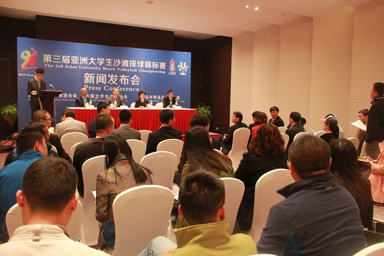 4月19日,2014年第三屆亞洲大學生沙灘排球錦標賽新聞發(fā)布會在青島靈山灣旅游度假區(qū)城市陽臺福朋喜來登大酒店舉行。隨后,亞大體聯(lián)全部常委實地查看了比賽場地。亞大體聯(lián)主席、教育部原副部長章新勝,亞大體聯(lián)第一副主席AL-HAI Omar A,亞大體聯(lián)副主席CHEN Kunning,亞大體聯(lián)秘書長CHOW Kenny,區(qū)領(lǐng)導孫大貴等出席。