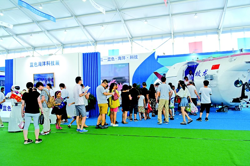 展示山東及青島推進(jìn)新舊動(dòng)能轉(zhuǎn)換、實(shí)施海洋科技自主創(chuàng)新的新成果,以及青島西海岸新區(qū)實(shí)施海洋戰(zhàn)略、率先藍(lán)色跨越的新亮點(diǎn),山東·青島館處處藍(lán)色脈動(dòng)。哈工程、北船重工、海西重機(jī)、華大基因、三泰集團(tuán)等駐青高校、大企業(yè)集中亮相,展出海工裝備、船舶制造、海洋生物、海洋醫(yī)藥、基因工程、海水淡化等藍(lán)色科技創(chuàng)新發(fā)展技術(shù),展現(xiàn)藍(lán)色經(jīng)濟(jì)發(fā)展的宏偉藍(lán)圖。