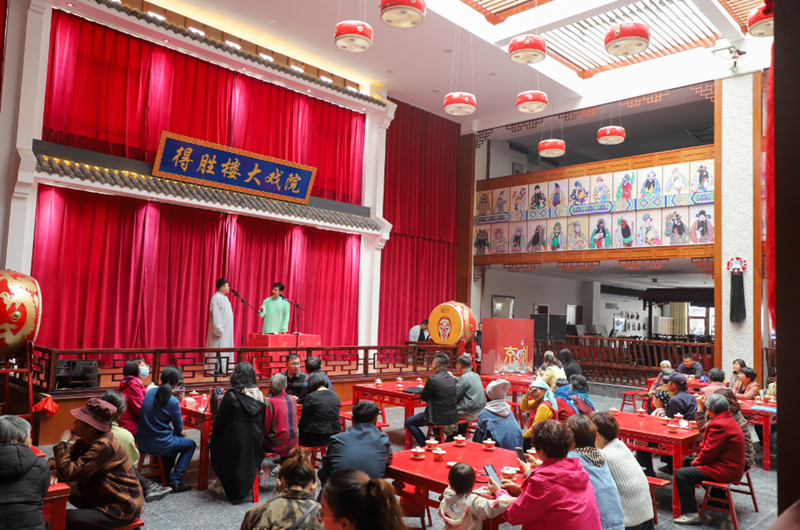 德勝樓大戲院里,一場(chǎng)傳統(tǒng)相聲《論捧逗》引得觀眾陣陣掌聲;新時(shí)代文明結(jié)婚禮堂里,30對(duì)新人互許愛的誓言,共赴婚姻的殿堂;沏茶、賞茶、聞茶、飲茶、品茶,南茶北引展覽館中,茶藝師們正展示著傳統(tǒng)茶藝;抹茶學(xué)院里,抹茶文化的歷史講解正如火如荼地進(jìn)行著,游客們學(xué)習(xí)之余品鑒著新款的抹茶美食......